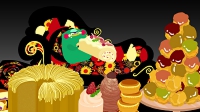 フジテレビテレビ 放送天下のSMAP×SMAPのブリッジアニメーションを制作させていただきました。 真夜中でも、食いしん坊怪獣はお菓子を食べ放題。でもでも、寝る前にはきちんと歯を磨かないと大変なことになりますよというメッセージがこもっております。