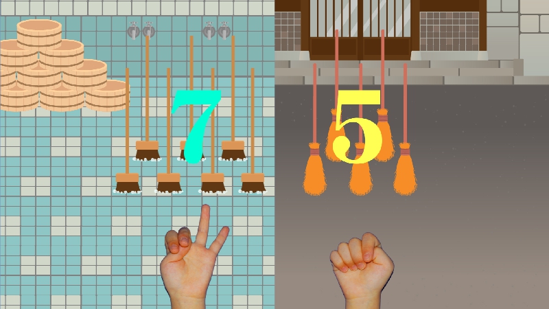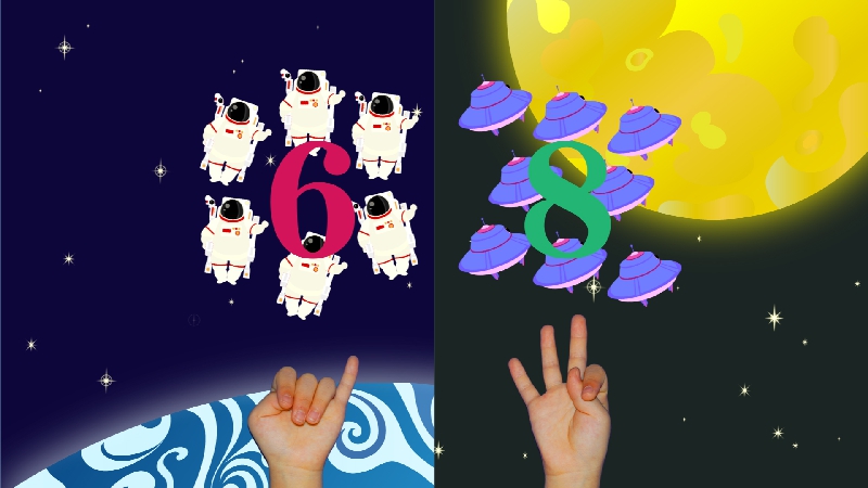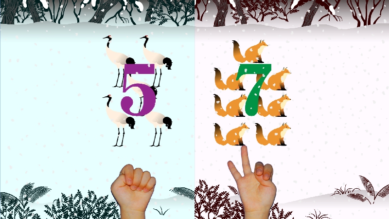 NHK Eテレ(月~金)午前7:00~7:15放送画面の真ん中から出てくるものの数を、指を折々数えるクイズです。
